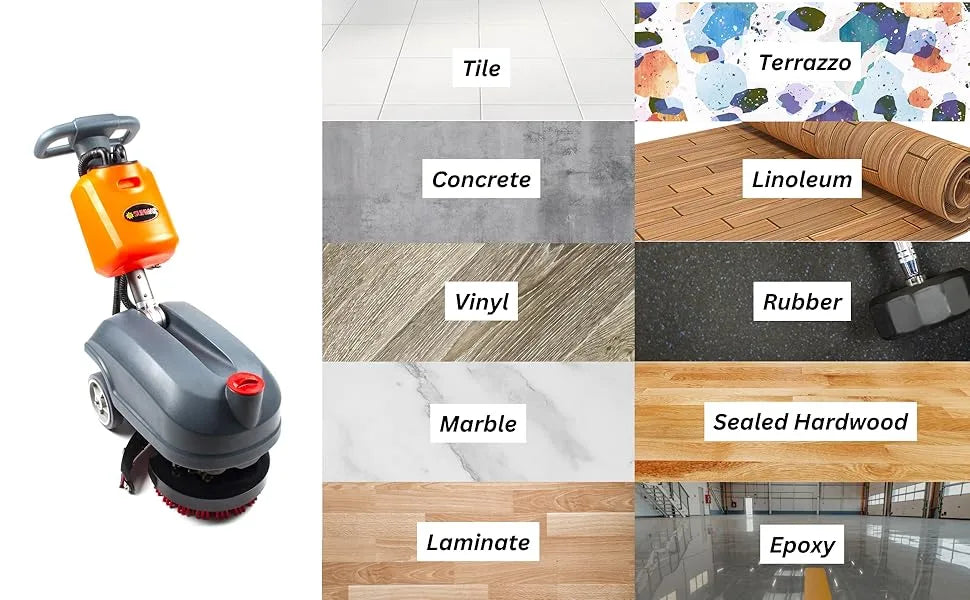 RT15 14" Commercial Compact Floor Scrubber Machine, 14500 sqft/h, 4-Gal Sewage Tank, Efficient Cleaning for Hard Floors