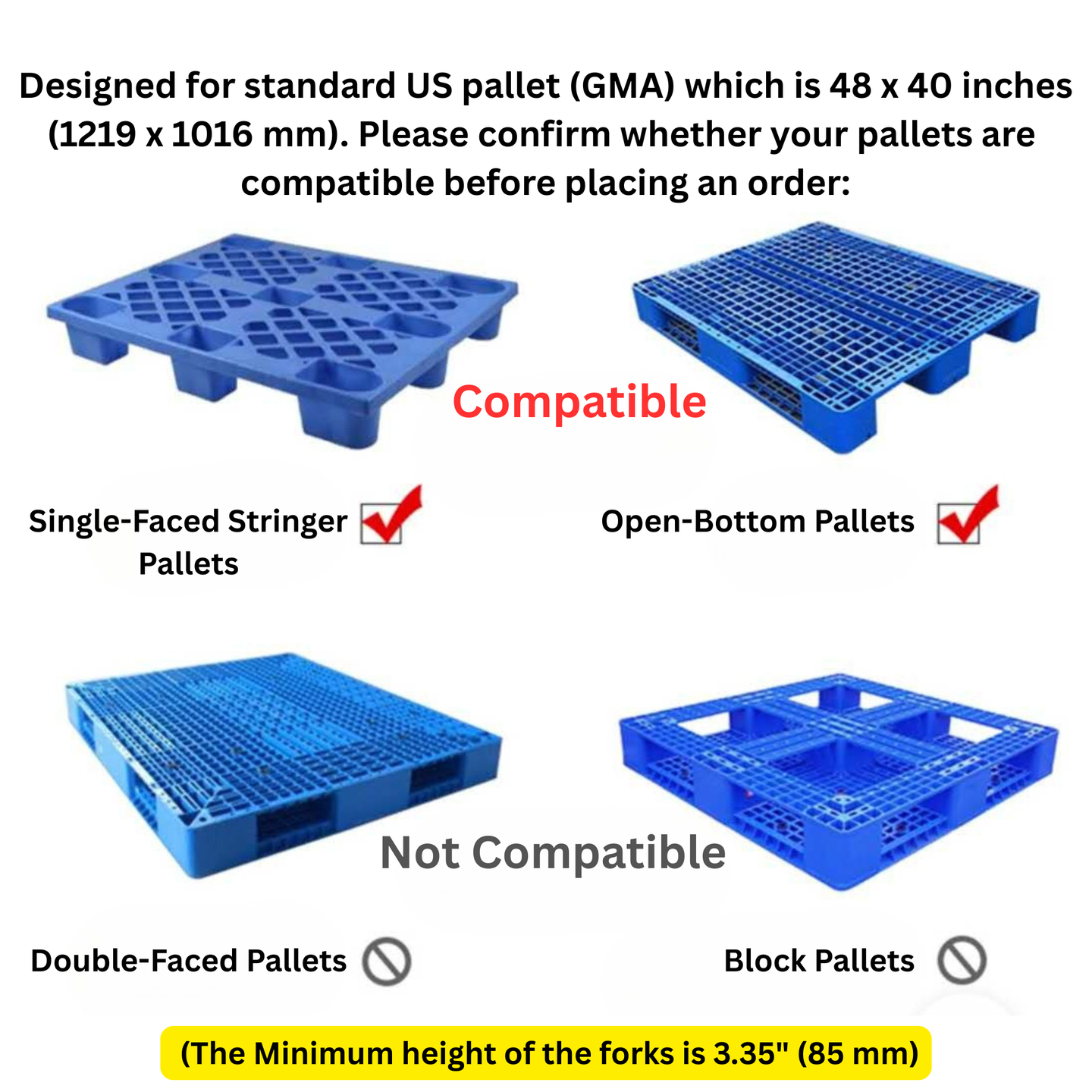 Please be noted the legs are non-adjustable so it is only suitable for open-bottom pallets.