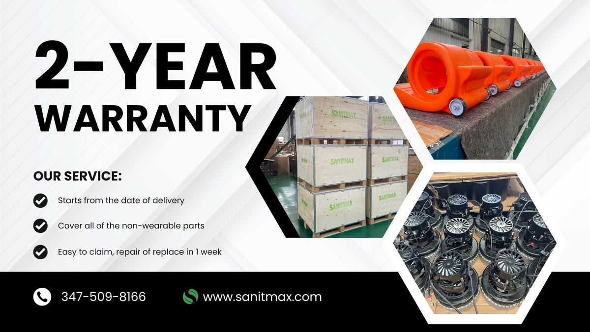 2-year Warranty for ALL the cleaning machines. Free ship the non-wearable parts to you in warranty time. A complete set of parts in stock to help solve the product issues in a timely manner.